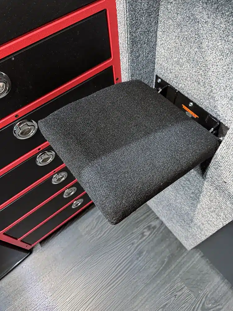 Space Optimization: Folds flat against the wall when used in step vans or inset into the wall in cab chassis to create a clutter-free environment when not in use.