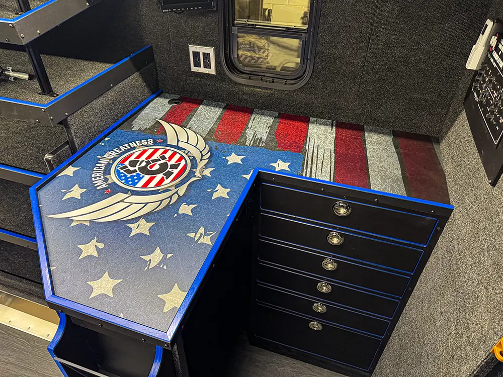 Protect your workspace and reinforce your professional image with our high-impact Custom Counter Wraps. We know that your countertops are the highest-traffic areas of your mobile store. That’s why we offer specialized graphics designed to withstand the daily rigors of tool sales while making a bold visual statement.