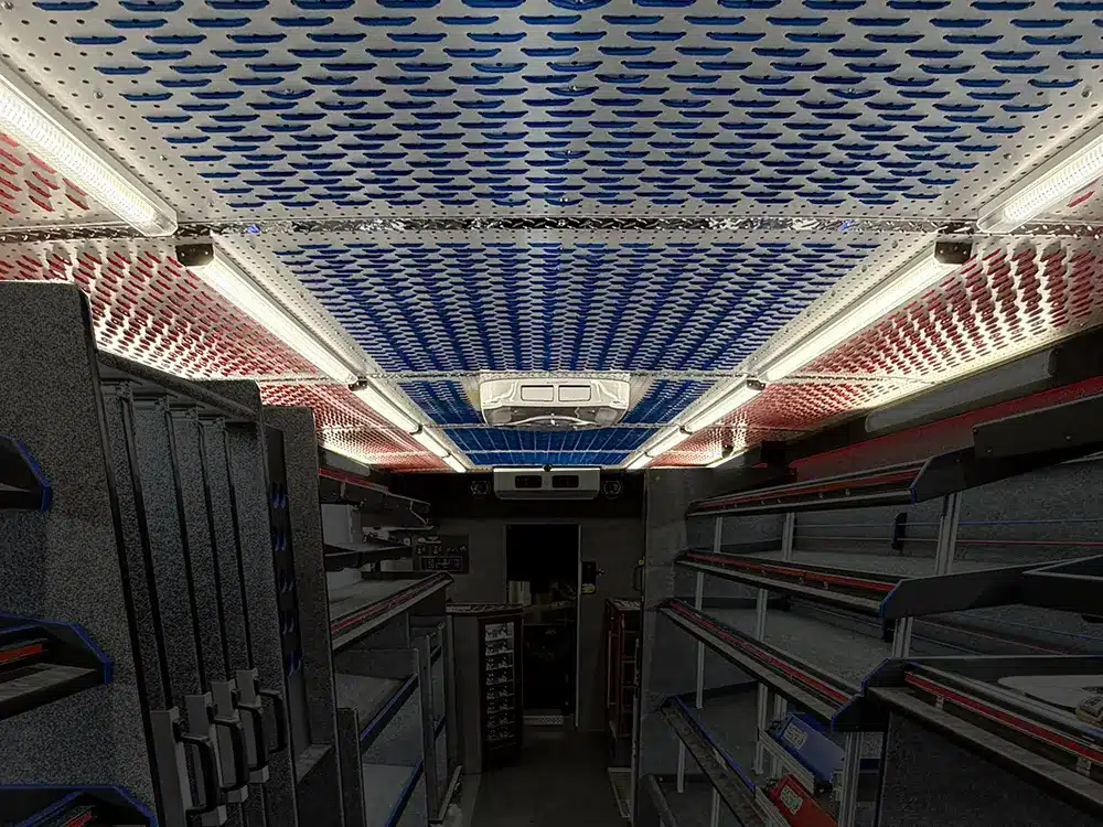 Built for the rigors of the road, our ceiling panels utilize industrial-grade shock cord and precision-cut pegboard to provide a secure, versatile display area. Choose between classic black or white finishes and customize your look with an array of lacing patterns. From blue, red, black or other colors, our color-matched lacing options offer a seamless, professional finish to any build.